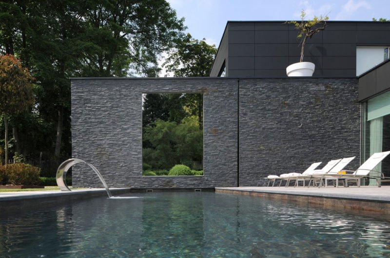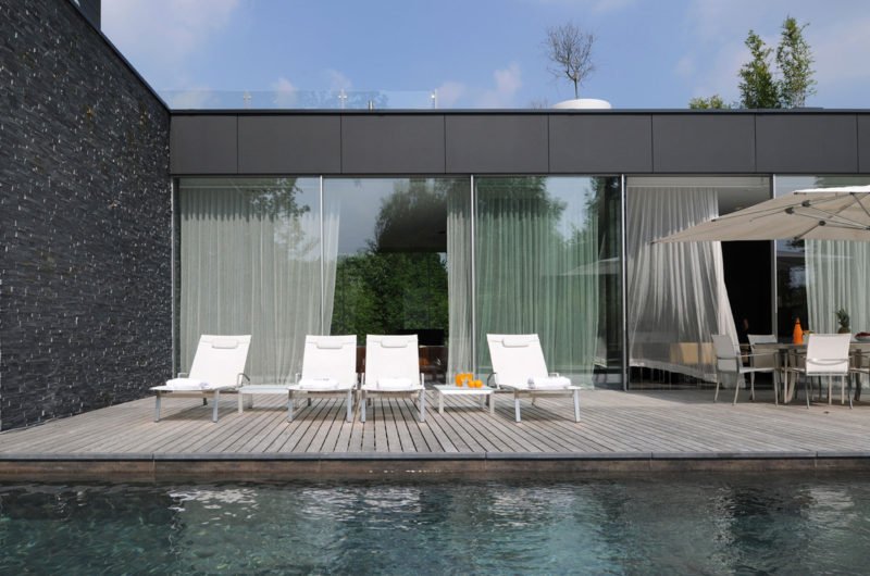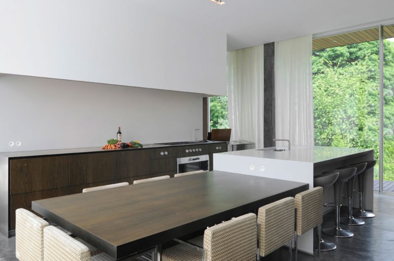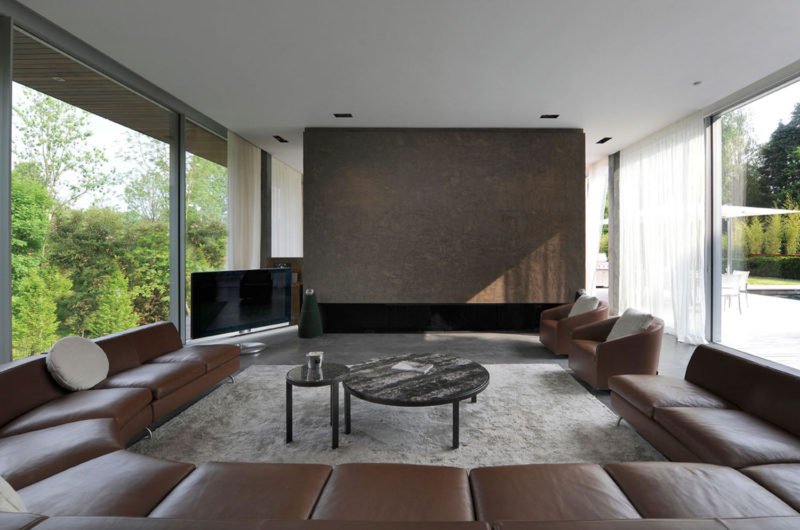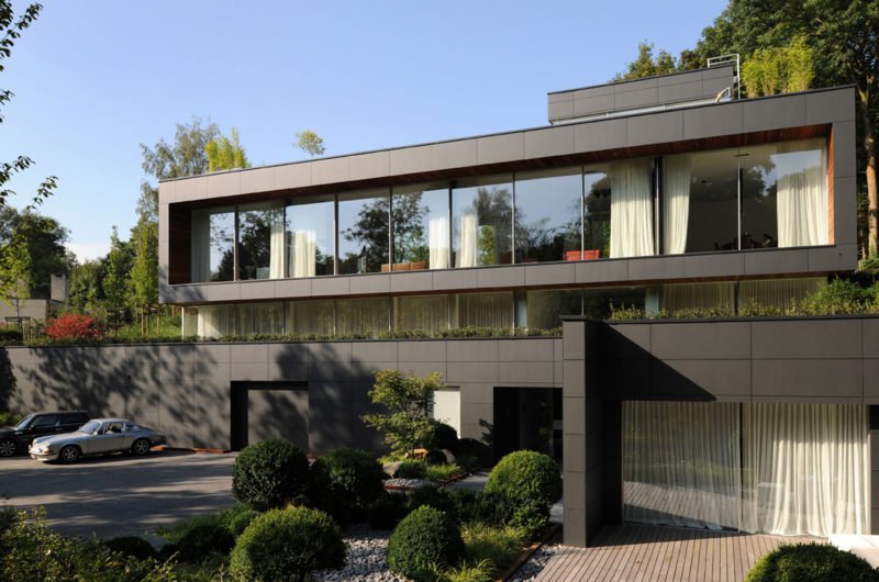This contemporary home can be found in Uccle, Belgium, within a district called Prince Orange, and it was built by an office called Durce on a large lot of 25 acres. The residence is in close proximity to the beautiful Sonian Forest, and it boasts a superb, contemporary design that involves cubic shapes and an overall sleek architecture.