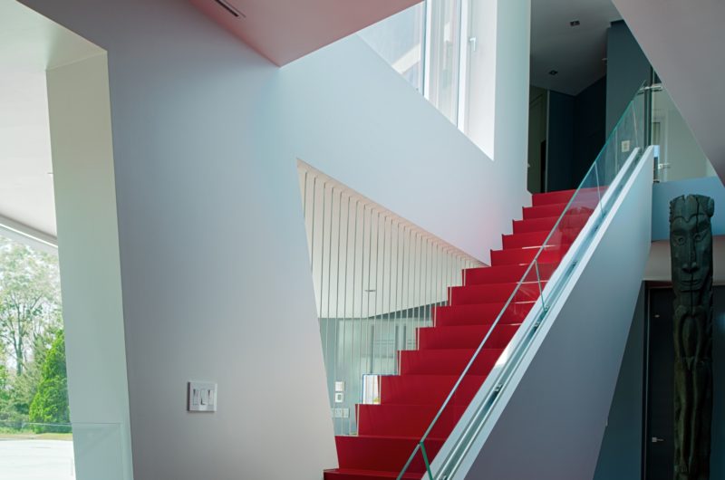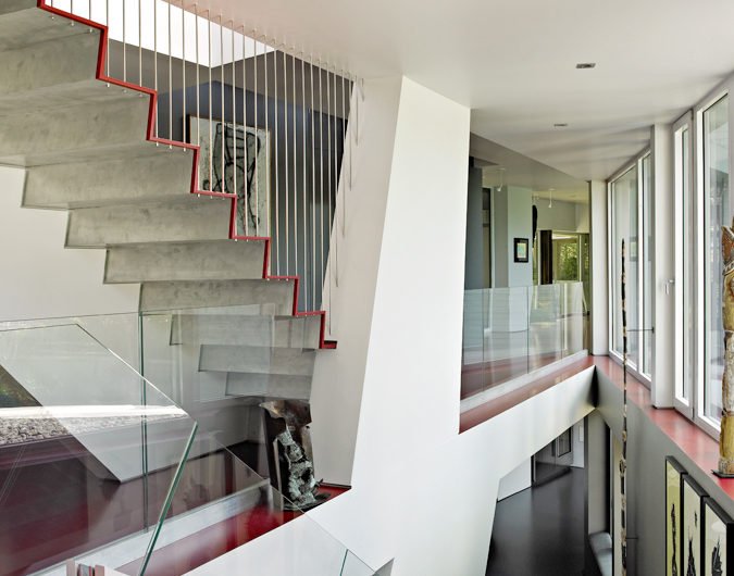 The ground floor now features a promenade that eventually leads to the library, which is connected to a beautiful covered terrace. Moving on to the second floor we find a luxurious master bedroom, which boasts fabulous views of the natural environment and of the sunset that can be admired from a generously sized balcony. The entire extension was added to one side of the house and can be accessed via a transparent bridge that is 6 feet wide. The swimming pool is flanked by a white deck that flaunts comfortable lounging chairs, but we should also mention that it features a triangular shape instead of an ordinary rectangular one.