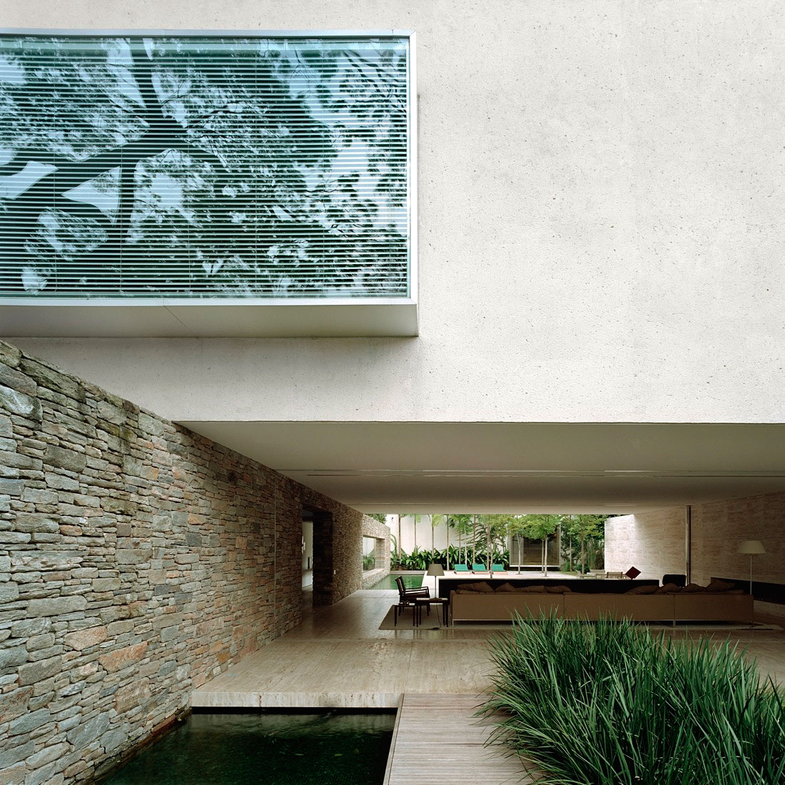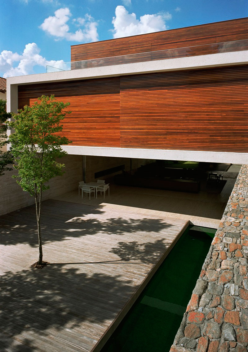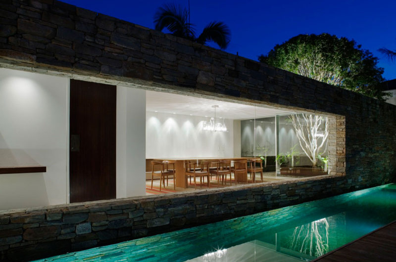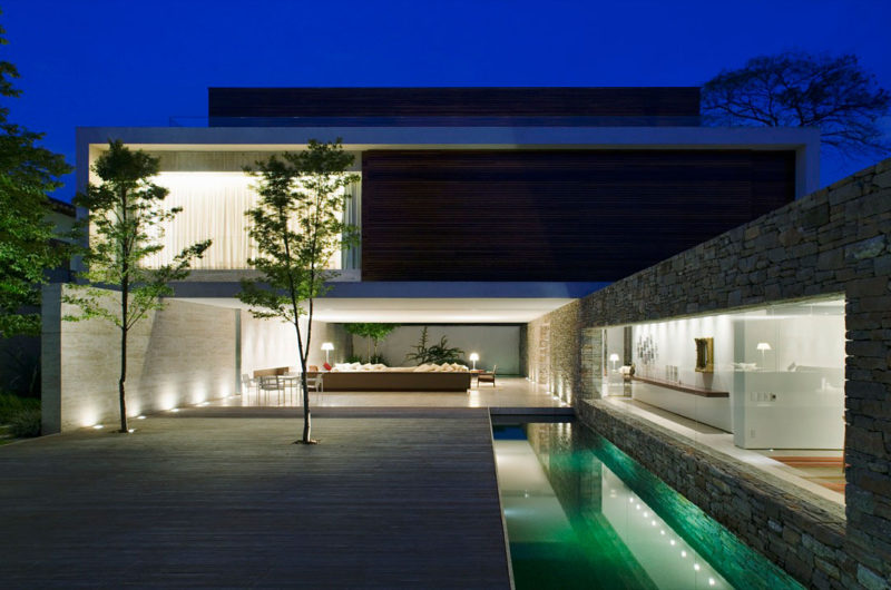 Studio MK27 – Marcio Kogan is the company behind this 8,956 sq ft home in Sao Paulo. The architects designed a contemporary unique home having as central elements river stone and wood.