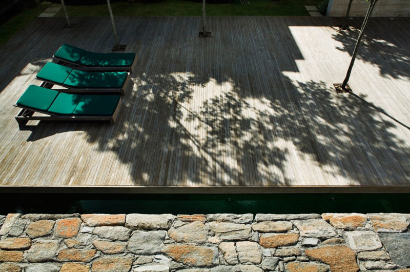 Mirindibas House has two levels, but it’s the first level that gives the house a surprising look. It is a social area with two opposite walls missing, thus giving the impression that the second level is levitating on top of this blank space. More bizarrely interesting, this open space living starts with a large wood terrace with walls that creates a demarcation point between the terrace and garden. The use of walls for the exterior space leaves the impression of privacy, while the lack of walls for the interior spaces signifies the opposite.