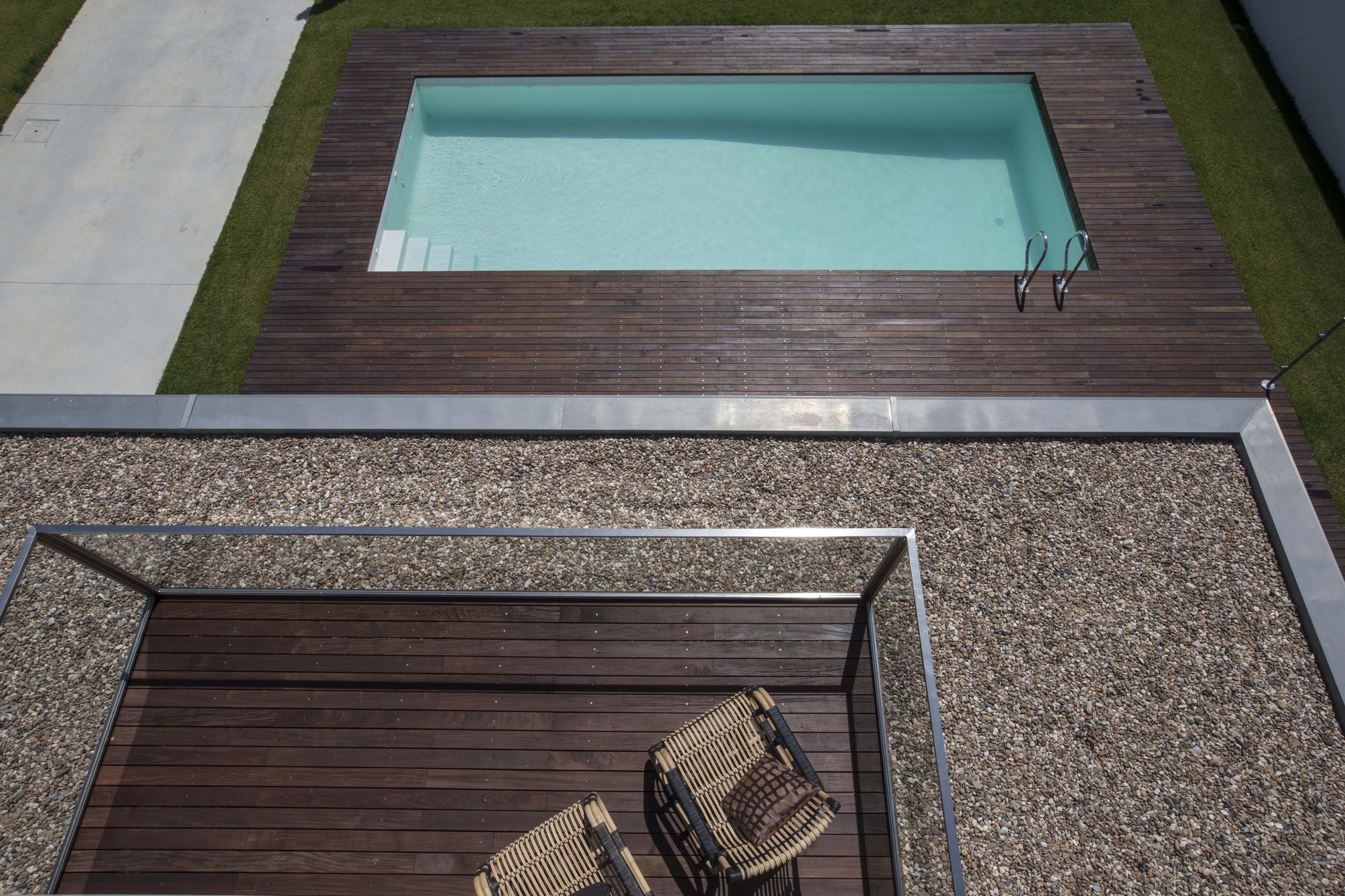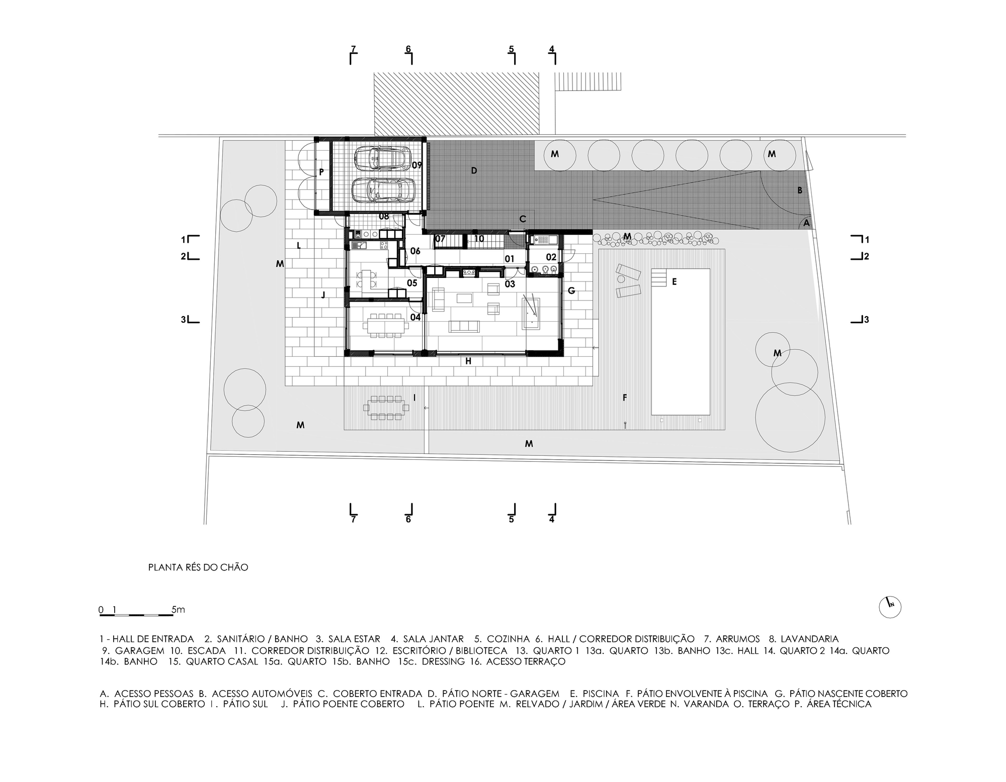 The building adopts the planned site in the subdivision, being the upper floor slightly offset from the ground floor to create some volume animation, providing areas for shelter and shade.