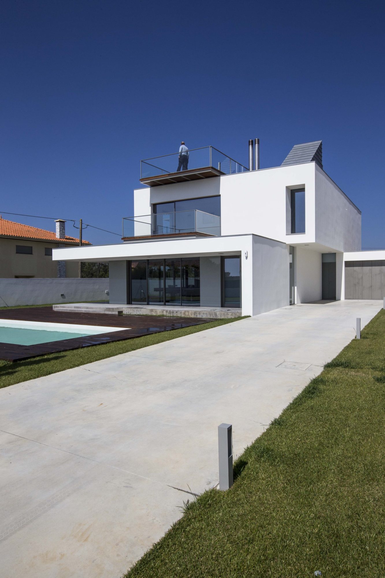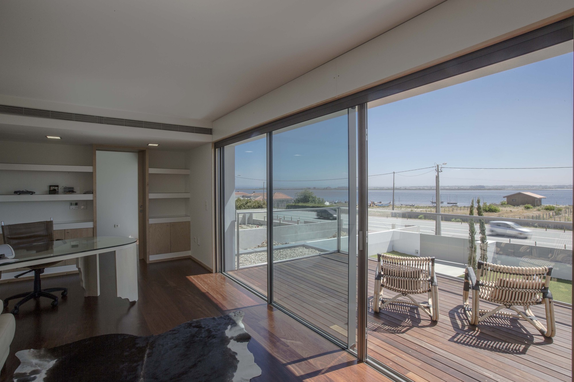 On the upper floor, the office has a prime location, taking advantage of a strong visual relationship with the Ria. The three bedrooms face the South, in a rhythmic modulation accentuated by individual balconies serving each