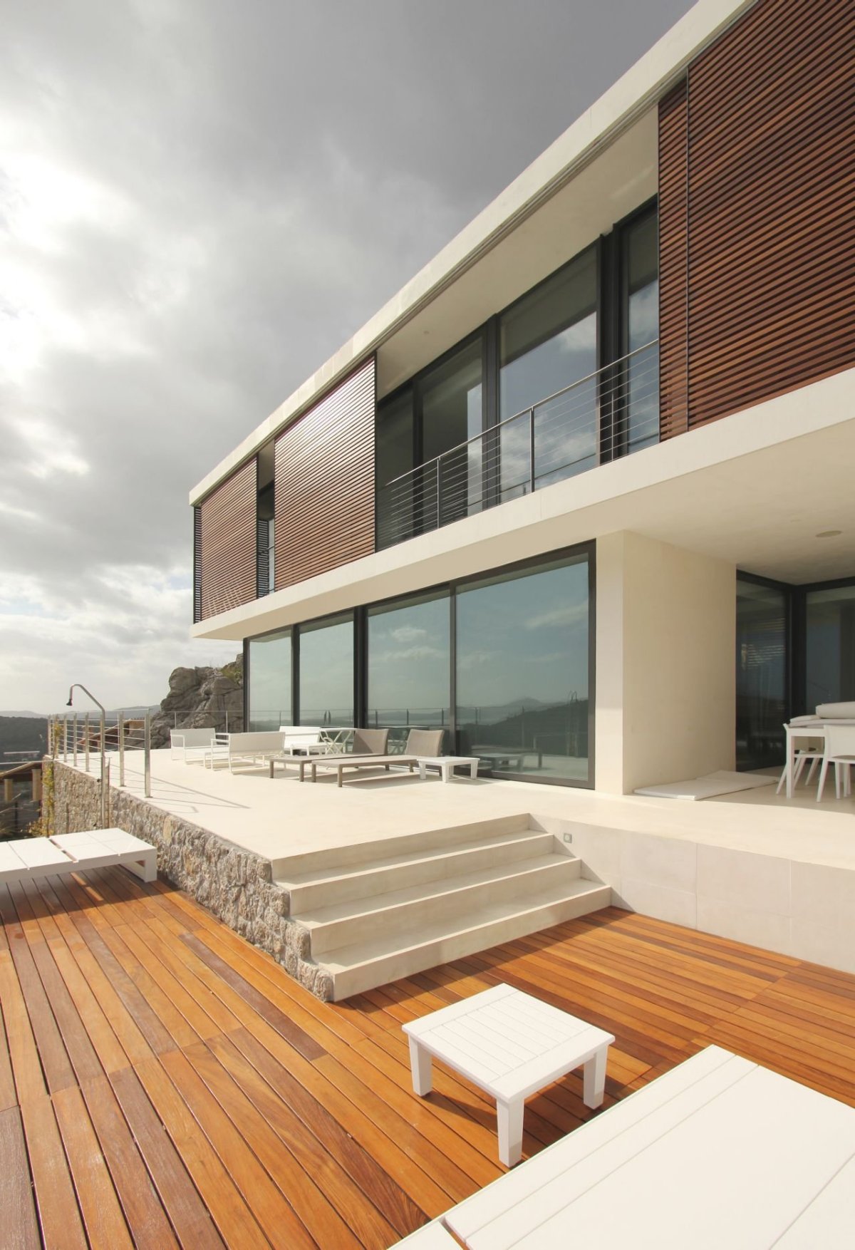 The bedrooms are located on the first floor, while the entire house benefits from cross ventilation, passive solar energy collection and a roof cover designed with a floating floor.