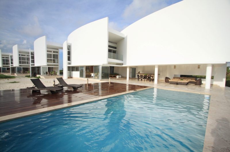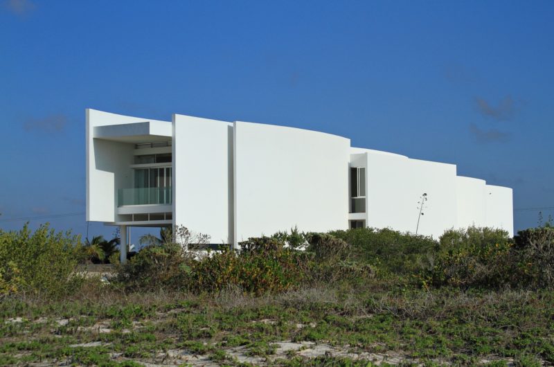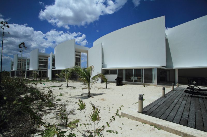 This complex of beach-houses was designed by Seijo Peon Arquitectos on the waterfront offered by the ocean at San Bruno, Yucatan, Mexico. The entire property spans over 3484 sq ft of sandy terrain and a couple with four daughters wished to have a house for each one of them. The entire complex has a total of 10 bedrooms, four of them being placed in the main house. The bungalows have two bedrooms each and their own social areas too.