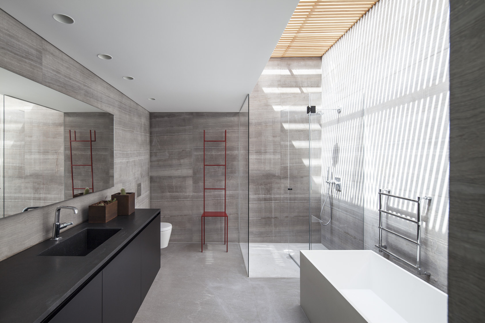 The considered use of the most abundant resource available in the local climate, sun light, allowed the designer to create an entire world of contrasts and suspense seen in one project: between mass and lightness, between silence and dynamism, between simple and complex, between light and dark, between mysterious and the known. Together, they enrich the structure both from an architectural point of view and the relationships between the building’s spaces and those living in them. A still cactus garden enhances the dry atmosphere and the silence with only the shadows of the cacti on the concrete walls and ceilings bringing the garden to life and acting as a symbol for the entire project.