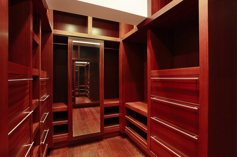 Materials such as black granite, rare marbles, onyx and cherry wood contribute to the luxury and finesse of the house completed by an indoor water feature.