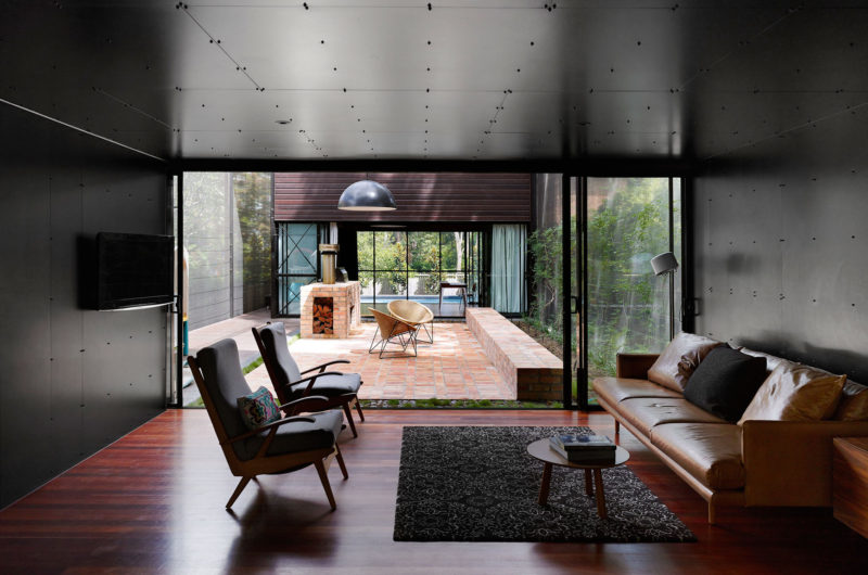 The rear pavilion that is found in close proximity to the pool is a private area that functions as an office or as a library, but it can also host intimate social calls. The middle pavilion houses the main living spaces as well as accommodations for the children, while the elevated timber pavilion includes the master bedroom as well as a screened veranda and a pitched roof.
