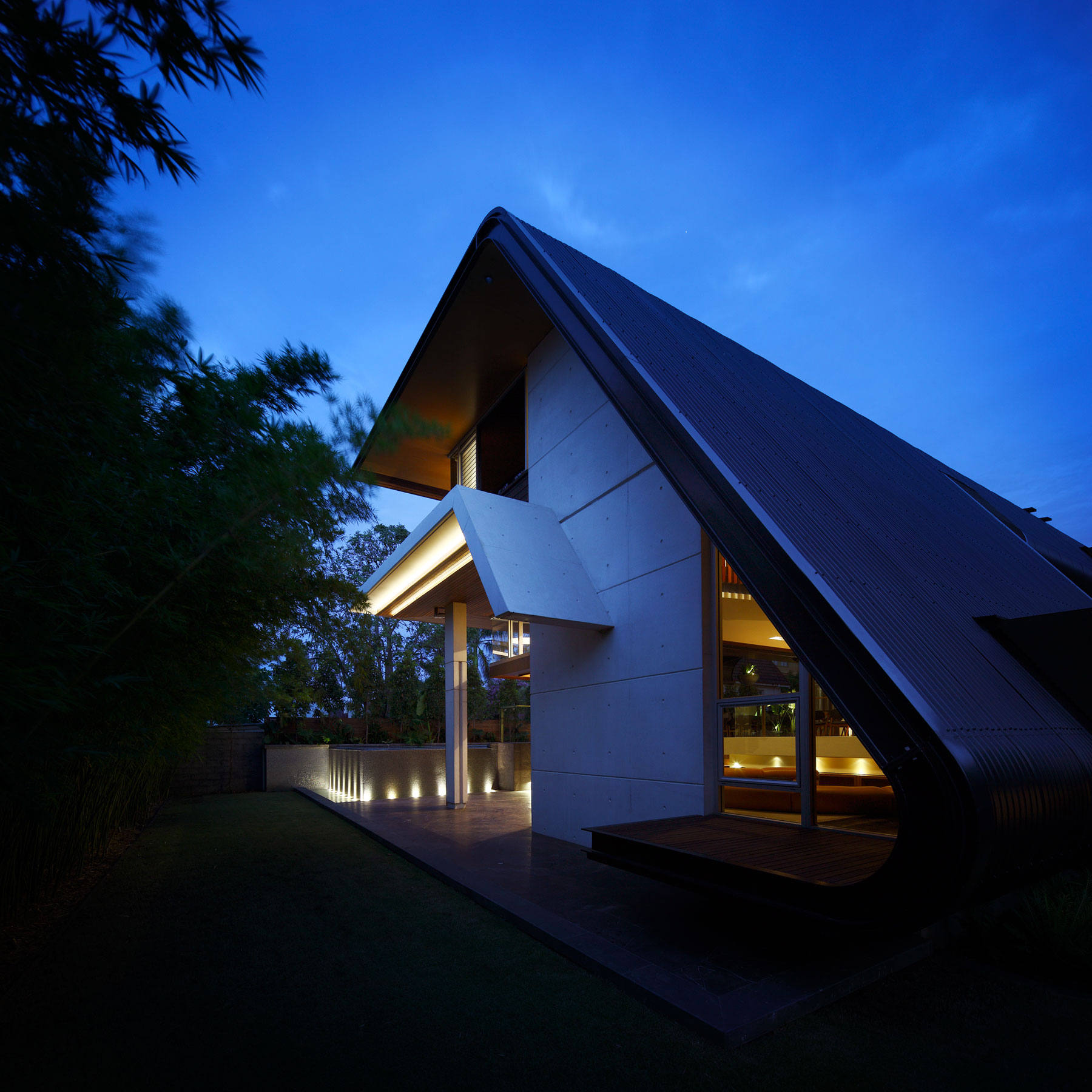 The dynamism of the roof is an emerging theme in a lineage of Arkhefield’s work. The Oxlade House continues an exploration into the roof as a subtropical protective device, capturing and defining space. Climatic responses combine with programme and place, informing orientation and transition.