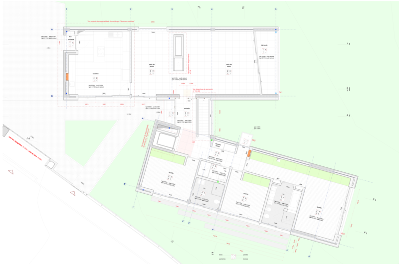It gathers three containers of different dimensions: the South one was designed for the private space, the North one gathers the social spaces and the smaller central one is the main element of all formal and spatial organization of this project.