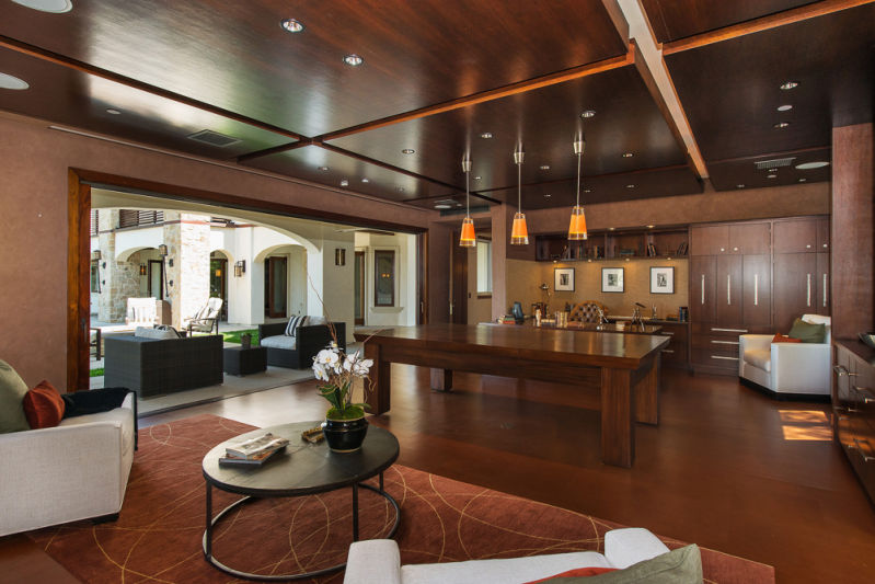 This project is an impressive retreat located in Encino, California, United States, that pampers its guests and makes them feel at home because of all the comfort, open floor plan and amazing amenities such as the home theatre, the Creston Home Automation, the private gym, the relaxing spa and the gourmet kitchen.