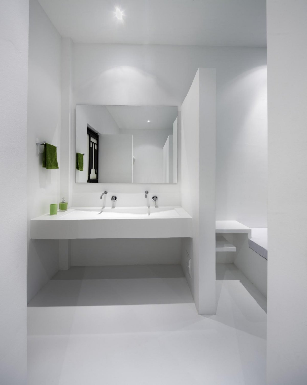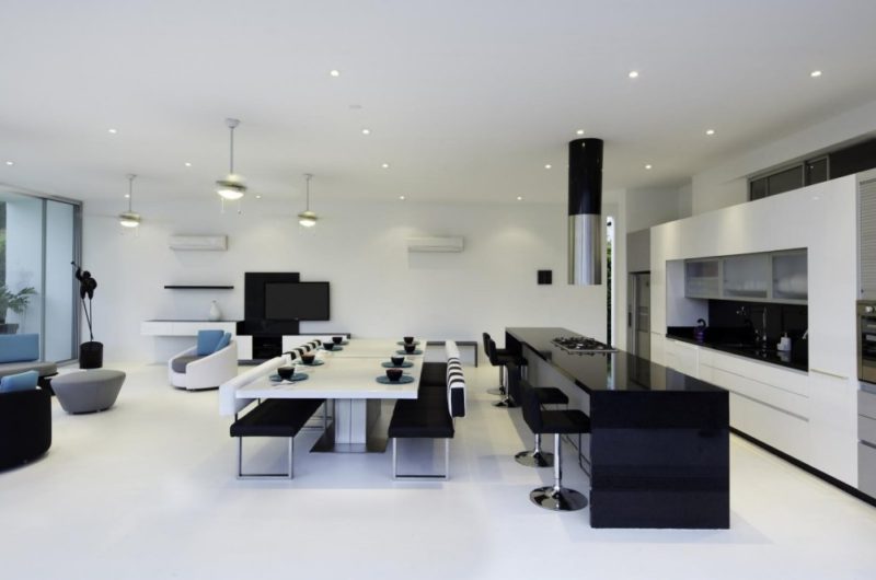 The house is very spacious with large windows that allow the outdoors to be integrated into the design. When the sliding doors are open, the wind provides great circulation. The interior design is complimented by the white walls, the black and silver appliances and the furniture placement. All the bedrooms have private balconies and the private bathrooms are equipped with dual sinks and showers.