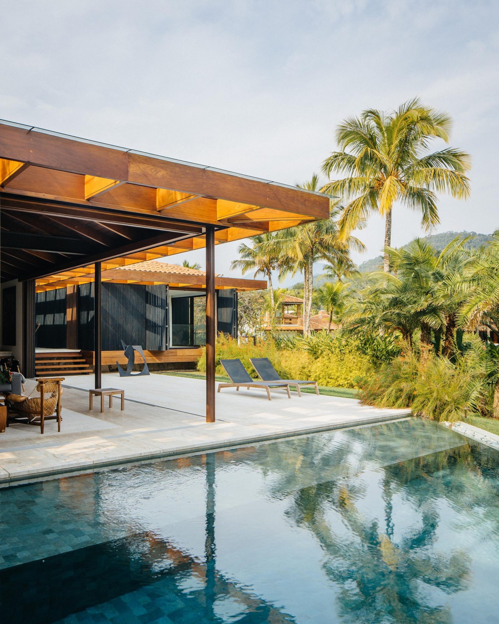 Suppliers: Esquadrias de madeira e madeira carbonizada: Oficina de Marcenaria; Telhado: Oscar Massao Kawaguti; Tapetes: By Kami; Cortinas: Uniflex; Luminárias: FAZ, Lumini, La Lampe e Lightworks; Mobiliário: Etel Interiores, Casual Exteriores, Claudia Moreira Salles, Atelier Hugo França, Dpot, La Novita, Atrium; Pedras: Palimanan (pedra piscina); Mármores: Palácio dos Mármores; Vidros: ArtCor; Metais para banheiro: Metalbagno; Louças: Deca/ Metalbagno; Tecidos: JRJ, Wallpaper; Marcenaria: Tora Tora