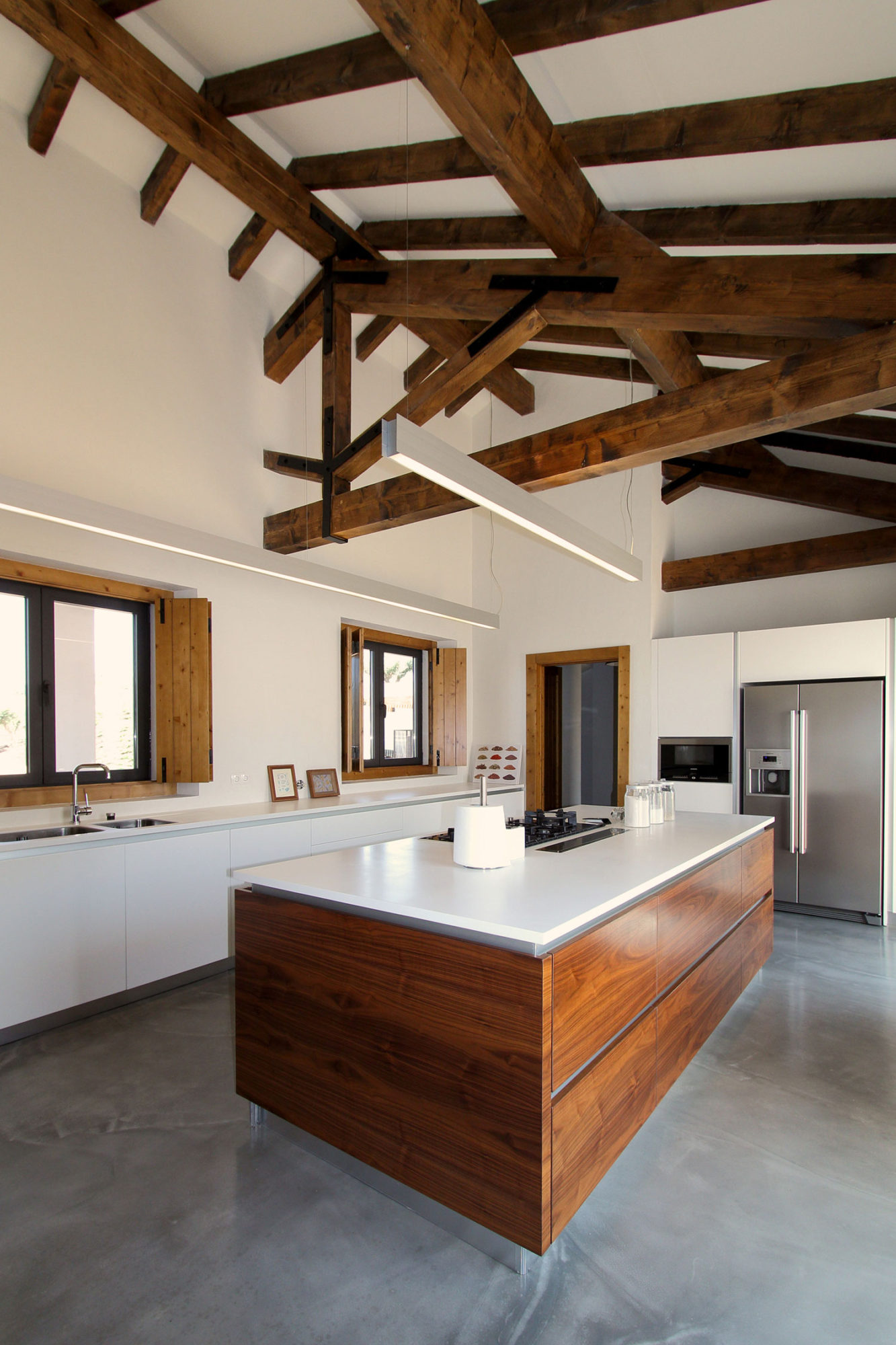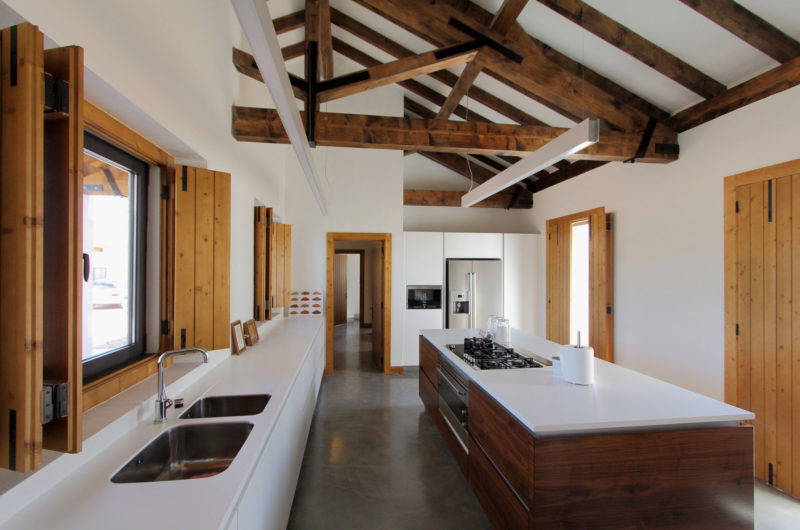 Speaking of its surroundings, this home is nestled on a 123-acre agricultural property that includes olive trees, vineyards as well as picture-perfect hills and plains. As we mentioned before, the home features a distinct U shaped layout, which means that it is divided into 3 main sections. The southern part of the abode contains the 4 bedrooms, while the opposite side to the north includes the service areas, a kitchen and a small dining room. The central part of the abode faces west and involves the entertainment and social areas such as the living room and the dining room. Furthermore, this U-shaped design facilitated the creation of a private central courtyard, which ensures quick and easy access to all of the 3 separate wings.