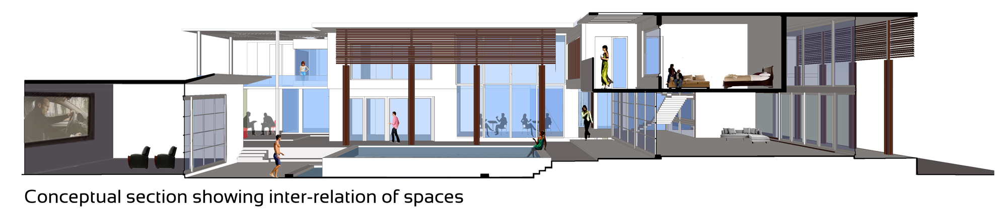The design is an attempt to create an eagerness to explore the spaces, while walking through them. It involved working with numerous scale models, testing form and spatial relationships and then refining them. The project also emphasised detail in terms of materials and forms. The attention to detail has created perfect transitions between different spaces. The connections between different areas were studied, so that they functioned optimally;