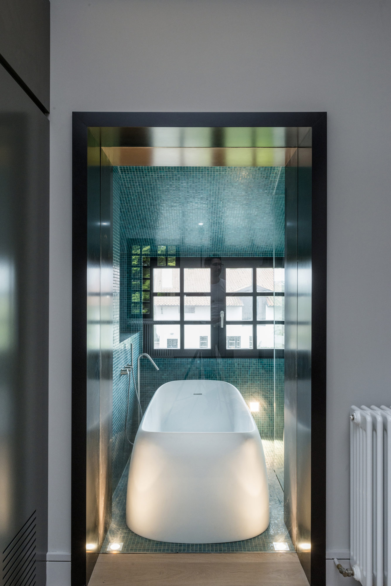 The high quality parquetry was created using sturdy and reliable oak, which blends seamlessly with the architectural lighting arrangements that were implemented by a firm called Viabizzuno. The bathroom is flooded with natural light and boasts a remarkable mix of emerald and black elements that form a superb contrast of color and texture. The master bedroom features its own dressing area, and it can be found at the first level of the abode, next to 2 other bedrooms.
