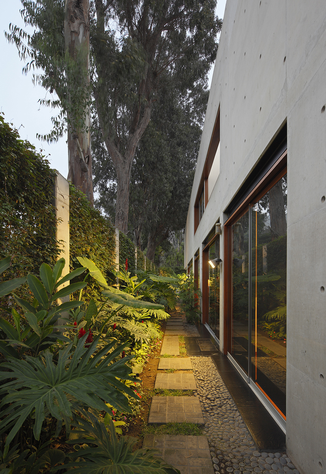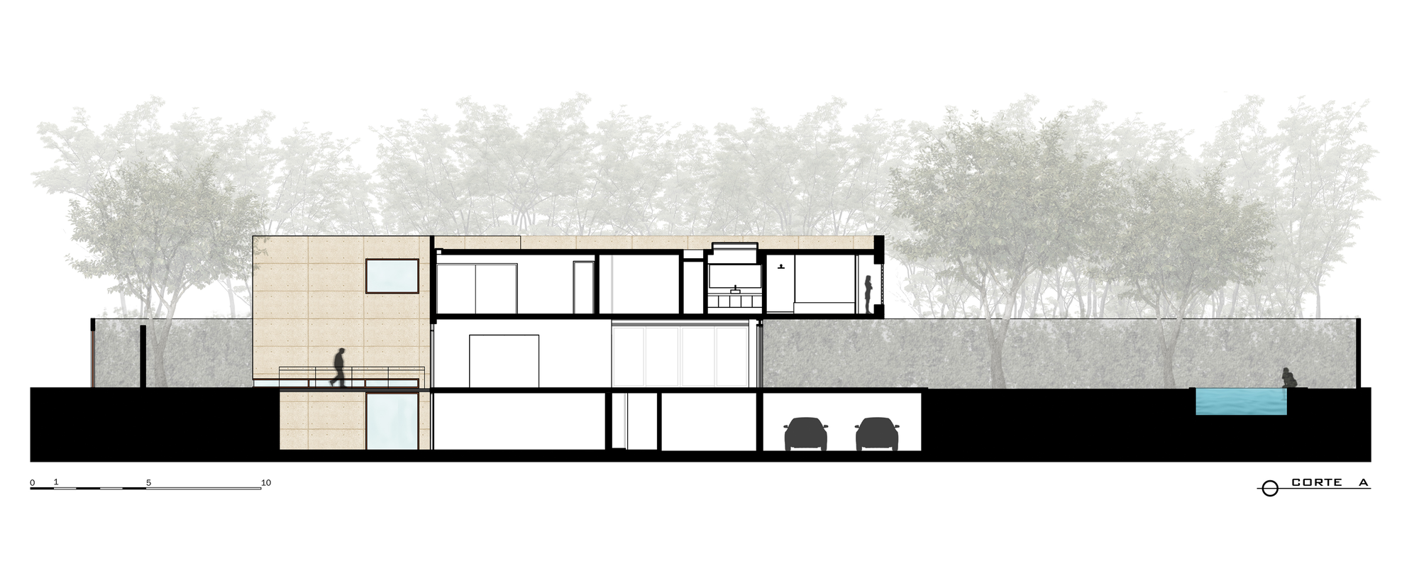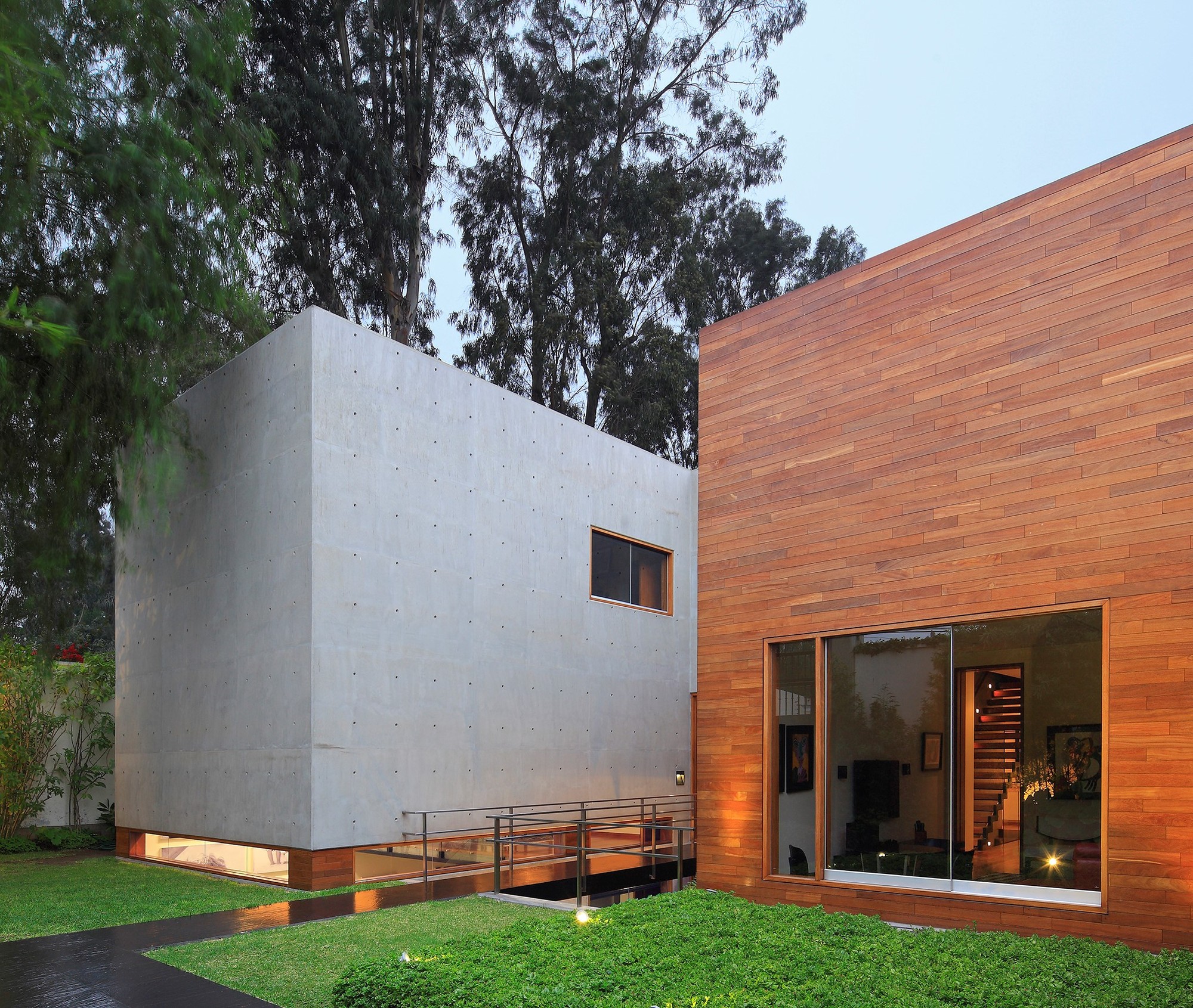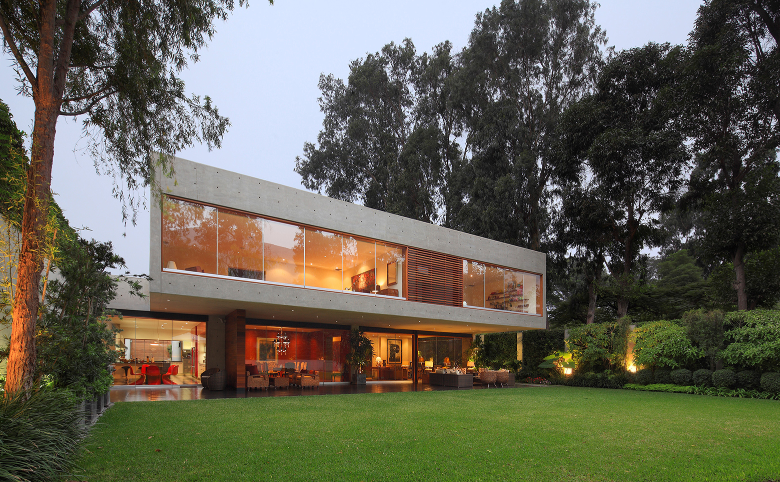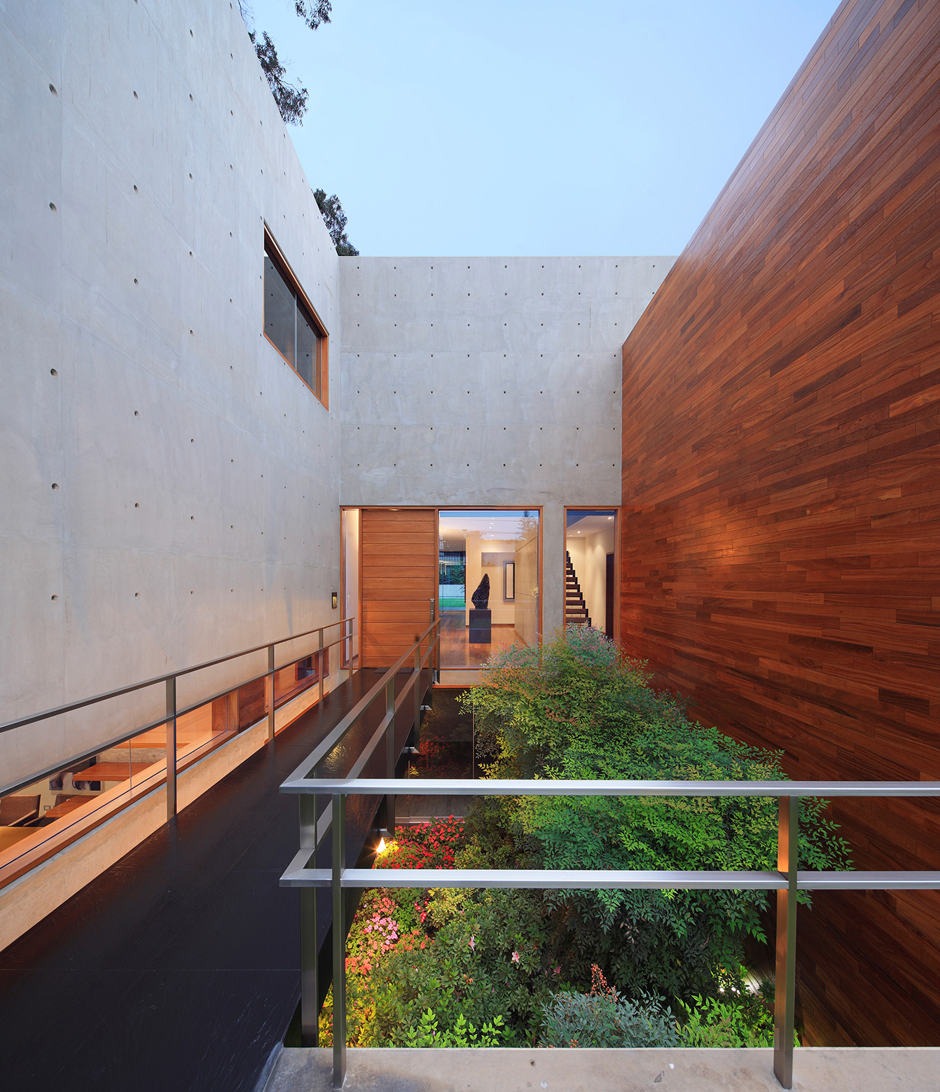 The house was built completely in concrete and steel to express its structural characteristics and plasticity allowing it to be molded in to volumes that intertwine creating voids to generate light and defining the interior and exterior spaces.