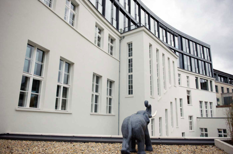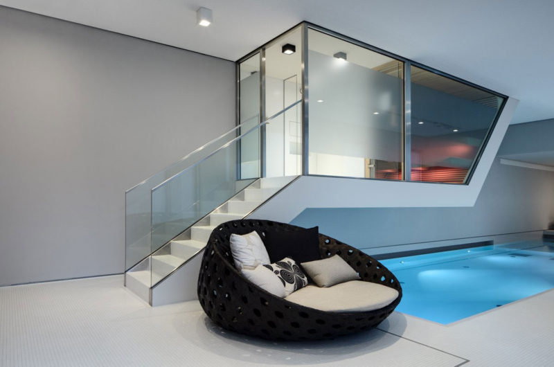 Fine quality materials were used to resonate with the luxury inside. The views over the Berlin Zoo, seen through the panoramic windows, were used as a central design element by LVG Arquitectura. Classic furniture meets contemporary design and natural tones and materials are mixed with sleek white surfaces and dark oak flooring.