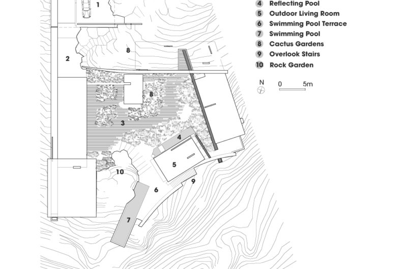 With five bedrooms and seven bathrooms, this is a spectacular luxury residence with 9,000 square feet of lavish spaces. It blends perfectly into the rocky landscape, thanks to the use of nature-inspired materials and colors all throughout the house. Large floor-to-ceiling windows ensure a seamless connection with the magical surroundings, while also letting in plenty of natural light every day.