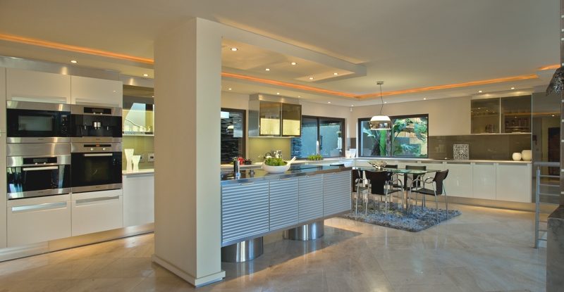 Public spaces such as the bar-lounge, the meeting room, the covered balcony and the entertainment area are located on the entry level, while the more private spaces are reserved for the upper levels. The fourth floor houses the guest accommodations, the dining hall, the kitchen and the family room. The children rooms and entertainment areas are found on the third floor, as well as a state of the art home theatre and a pool deck. The second floor is reserved for the master suite, and the ground floor is where the spa, squash court, hobby room, gym and wine cellar with its tasting room can be found.