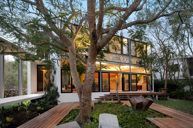 This exquisite estate is called the House Among Trees and it can be found in Mérida, México. It was built in 2010 by a firm called Muñoz Arquitectos Asociados. It boasts a modern design, with high end finishes and superb, abstractly shaped interior decorations, as well as generous windows that provide a seamless transition between the indoor and outdoor spaces.