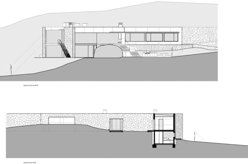 The spacious rooms are opening to the north view and closing to the neighbors and the wind. As for the construction materials, there were used carved stone for walls, floor and ceilings and reinforced concrete for slabs, beams and columns.