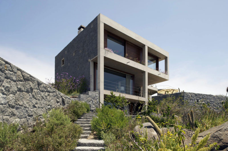 Casas 31 is a project consisting in two holiday homes for a three-generation family, located atop a rocky cliff in Punta Pite, Chile, that were designed by Izquierdo Lehmann Arquitectos.