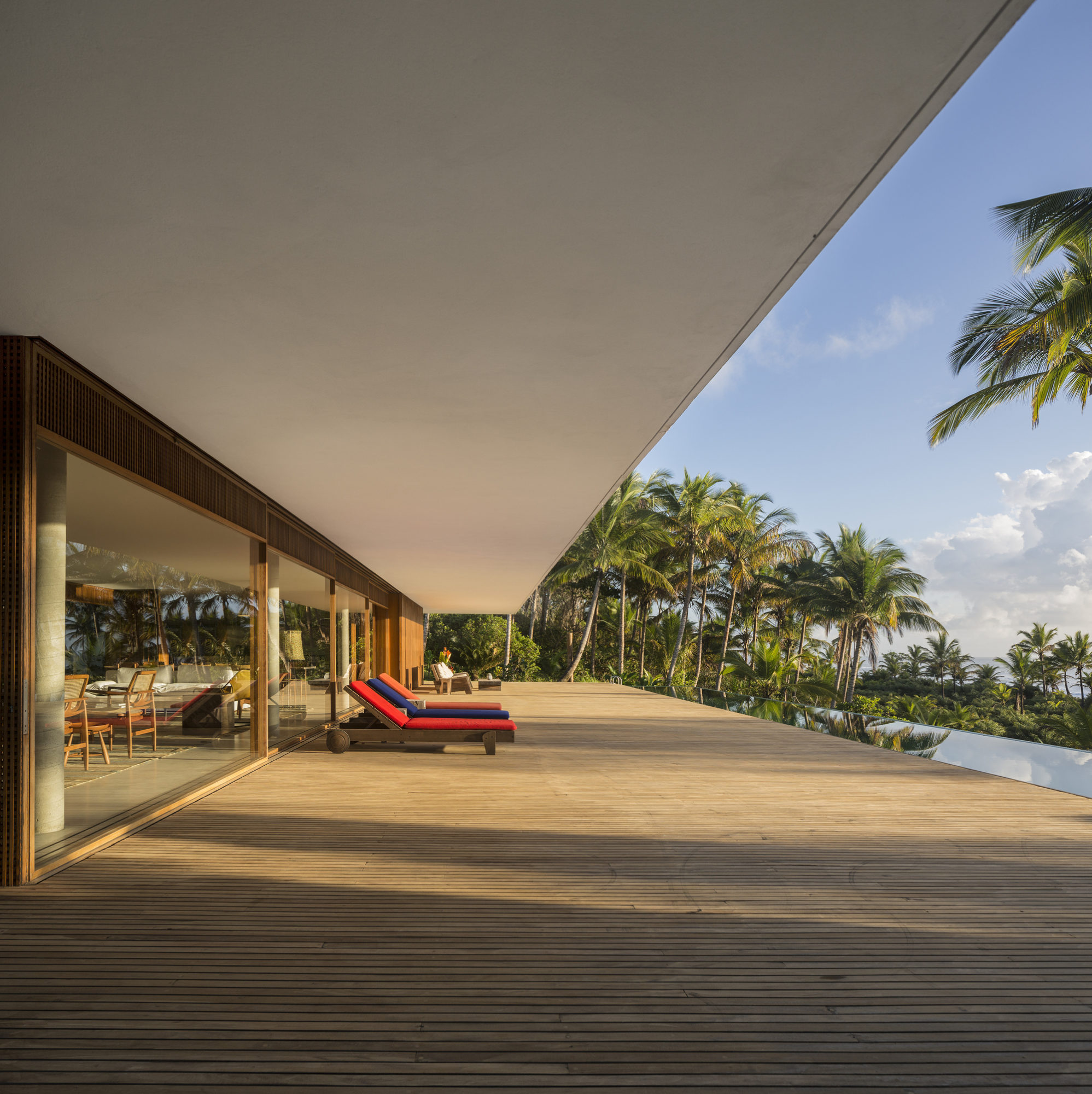 The House Txai offers a radical experience of integration between the inside and out. It is a place to drink coconut water, swaying in the hammocks. The tropical atmosphere of Bahia impregnates all of the spaces and the contact with the garden is necessary in order to use the house, as it integrates the trajectories of quotidian life.