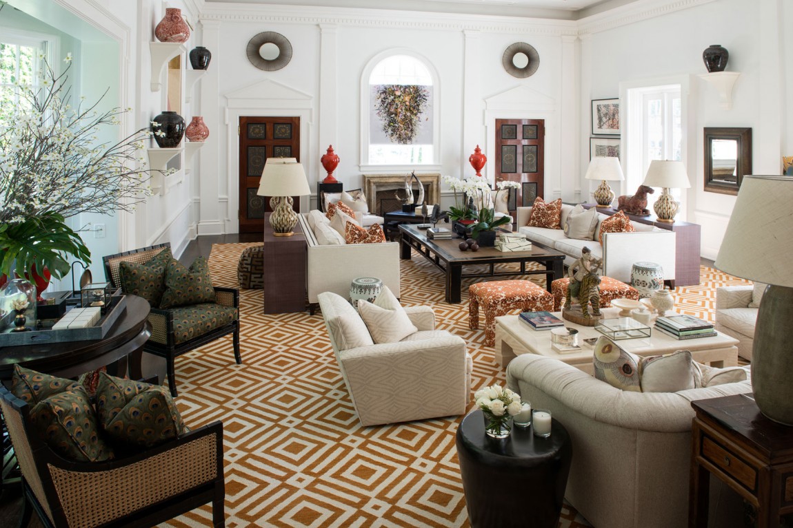 To give the space a contemporary feel and somewhat lighten the weight of history, Les Ensembliers provided a counterbalance to the overabundance of tropical colours that define traditional Palm Beach interior design. The designers decided to turn all the surfaces of the house white, attenuating the presence of details. Colour subsisted only in the form of accents in upholstery patterns and rugs. This dominantly monochrome canvas made it possible to highlight certain furniture pieces and contemporary artworks and to bring a touch of modernity into a classic environment.